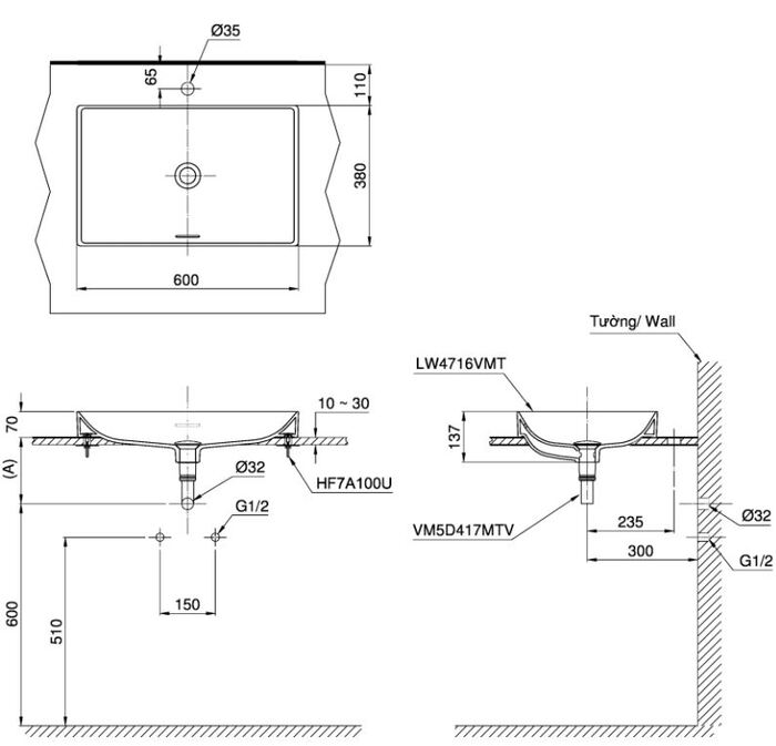 Bản vẽ kỹ thuật Chậu lavabo đặt bàn TOTO LT4716MTG17#CMW