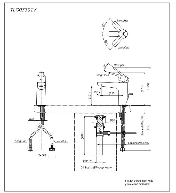 Bản vẽ kỹ thuật Vòi lavabo thấp nóng lạnh TOTO TLG03301V